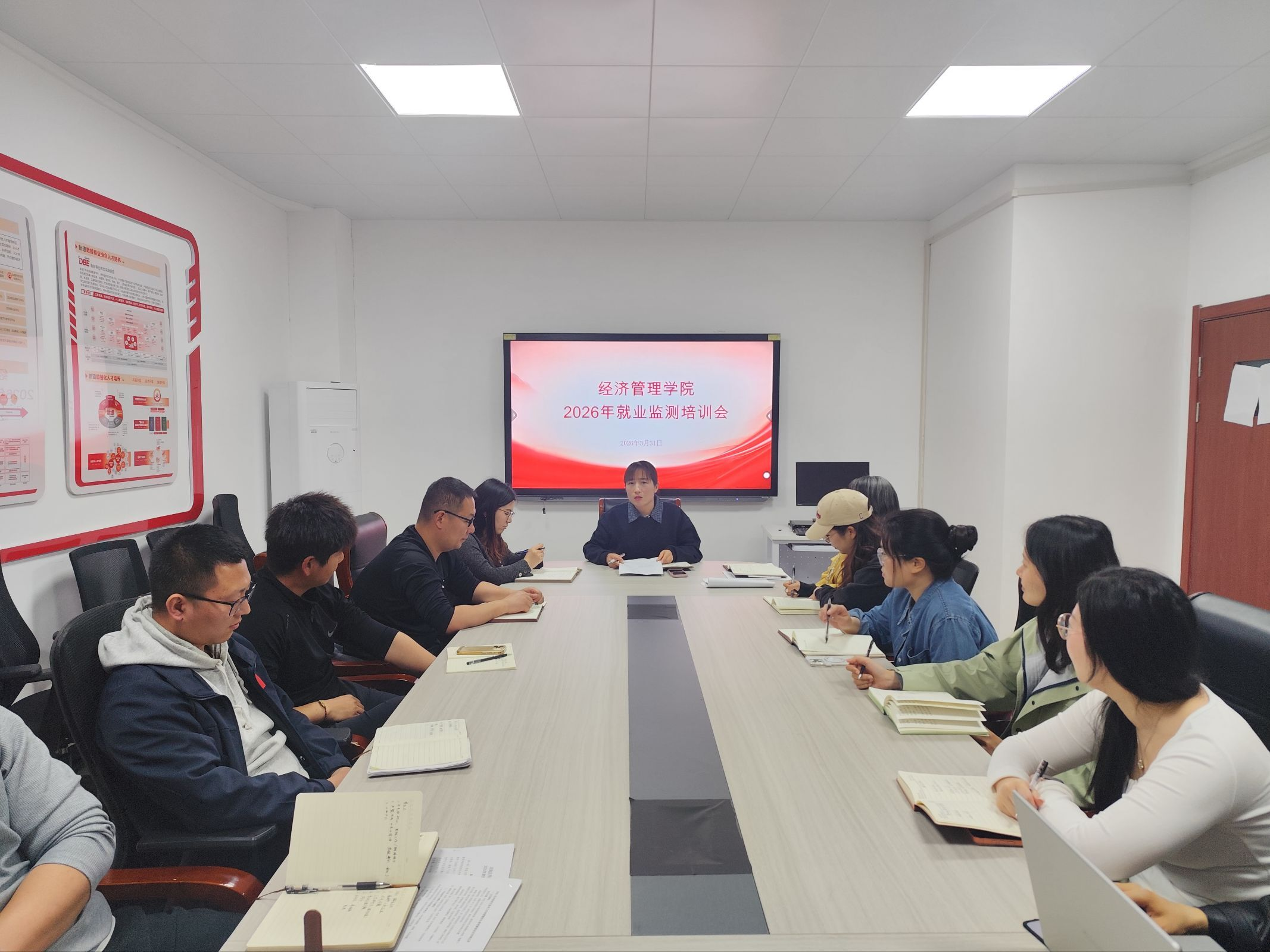 为进一步提升我院就业数据监测的精准性和实效性,3月31日,经济管理学院于E411召开2026年就业监测专题培训会。本次会议由学院就业工作负责人张昂主持,学院领导和毕业班辅导员参会。