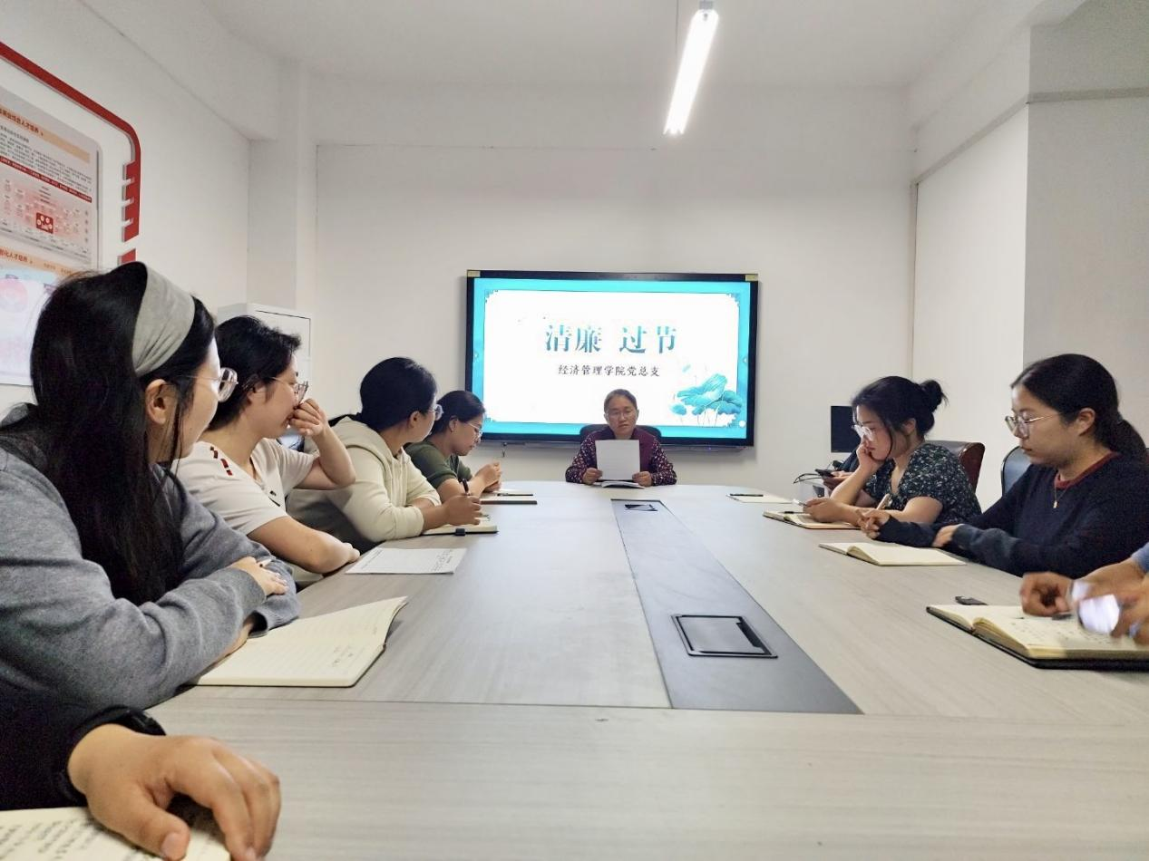 为坚守节点、巩固拓展深入贯彻中央八项规定精神学习教育成果,驰而不息纠“四风”树新风,弘扬清正廉洁之风,营造风清气正的节日氛围,9月30日下午,经济管理学院学工党支部在B410开展“清风揽明月 清廉伴佳节”主题党日活动,全体党员参加活动,副书记王盼红主持活动。