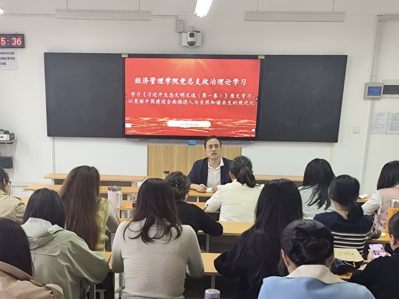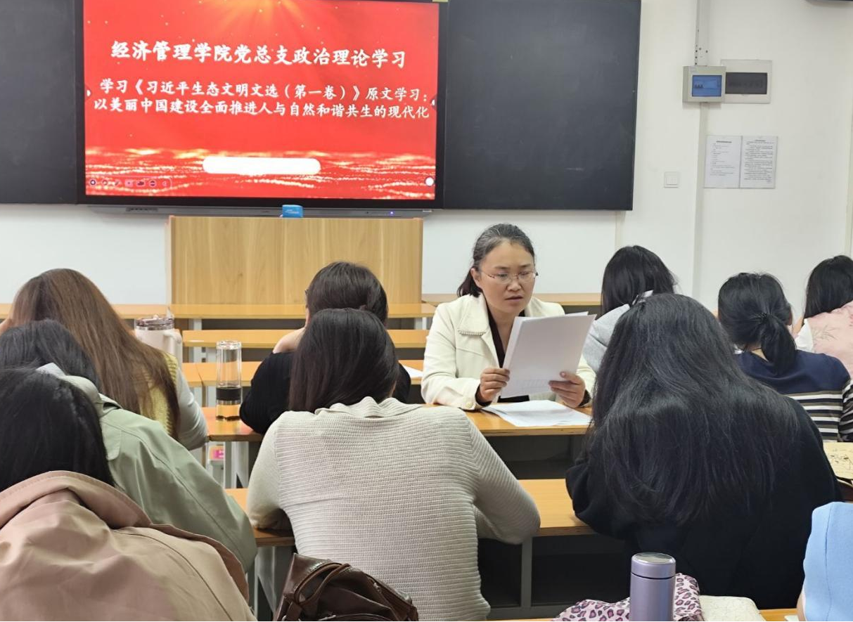 9月28日下午,经济管理学院党总支在E309组织召开专题政治理论学习会,深入学习领会习近平生态文明思想的丰富内涵与核心要义。本次会议由学院院长张召哲主持,学院副书记王盼红领学,学院全体教师参加。